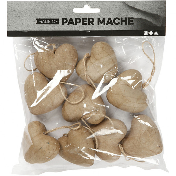 papier-mâché heart with jute string for hanging.