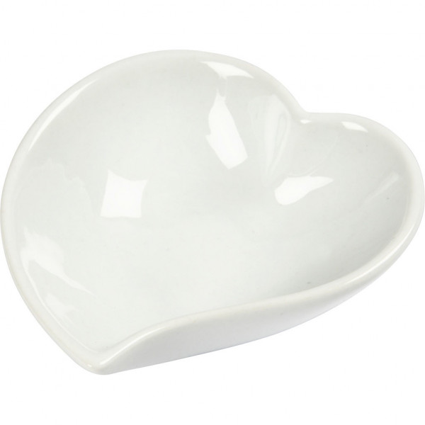 Heart-shaped dish, D: 8 cm, H: 2 cm, 12 pcs, white [HOB-55689]