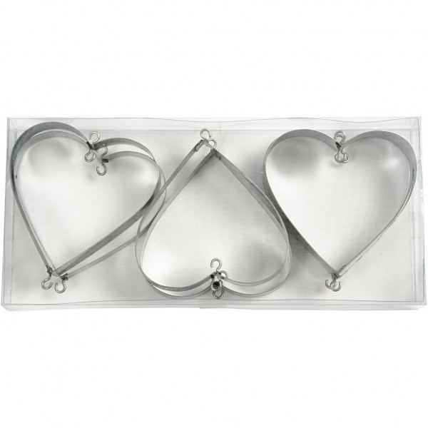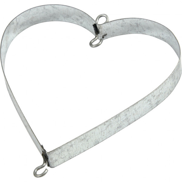 Galvanized metal heart with 3 small hooks (above, inside, below).