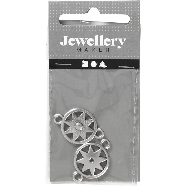 Jewellery Pendant, D: 15 mm, hole size 2.5 mm, 2 pcs, silver-plated [HOB-61172]