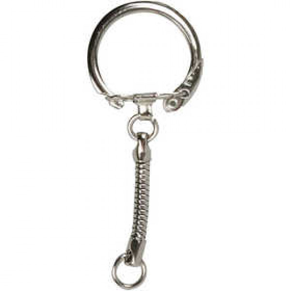 Metal key ring with chain and 15 mm eye.