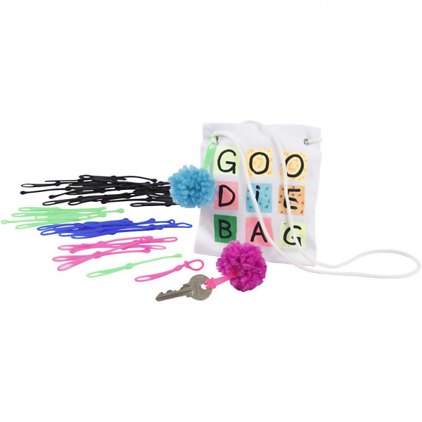 Strip of silicone which can be decorated with beads and mounted as pendants on keys, bags etc.