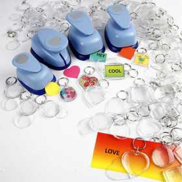 Key rings of transparent acrylic - with slot to insert your own drawing, photos etc.