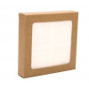 These soft, earth tone paper boxes bring out bright and vibrant colors of jewelry, note cards, and more. At 105 x 22 x 105mm, these Kraft Paper Window Boxes are a good match for square products like napkins and tiles, but work equally well for circular coasters and cookies. Made from 290 gsm Kraft Board, they feature an archival, poly sheet glued to the interior of the box window. These brown paper boxes also have natural appeal for organic bath and beauty products. Boxes ship flat. Easily assemble by shaping along soft fold creases. Food safe.