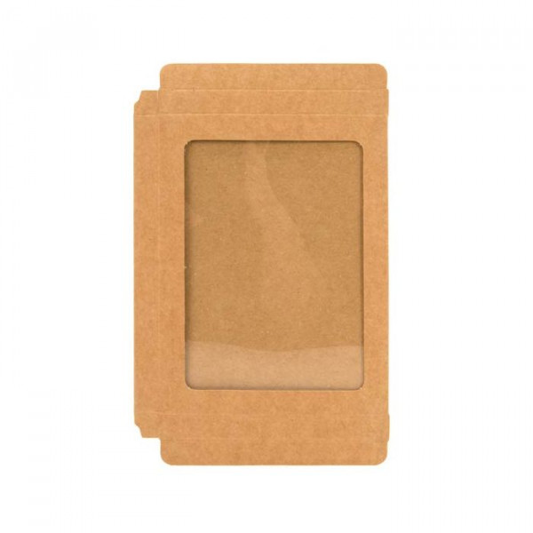 Versatile Kraft Window Boxes are a great way to package stationery, jewelry, candy, and gifts. Our WKRG339 box has outer dimensions of 95 x 13 x 132 mm and features a cutout window that measures 75 x 111 mm. Like our WKRG246 product, this box is ideal for holding A1, 4 Baronial cards and envelopes but offers less depth. This natural brown color is a welcoming package for organic products or crafted, handmade items. Other uses may include cookies, artisan chocolates, necklaces, and soaps. The Kraft material is made from 300 gsm and recycled materials. The attached poly sheet is a sturdy 10 mil thick and provides a great presentation for your product. Assemble by folding along soft creases and secure the tab for closure. Easily brand with labels, stencils, or a custom design.