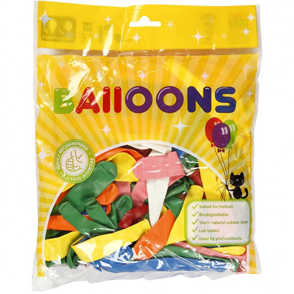 Balloons in many different colours for all occasions - pack contains 2 different sizes.
