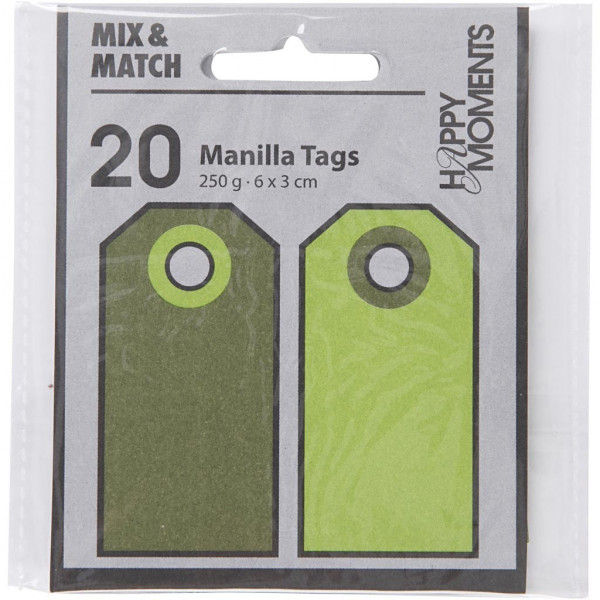 Manila Tags, size 6x3 cm, 250 g, 20 pcs, lime green/dark green [HOB-234007]