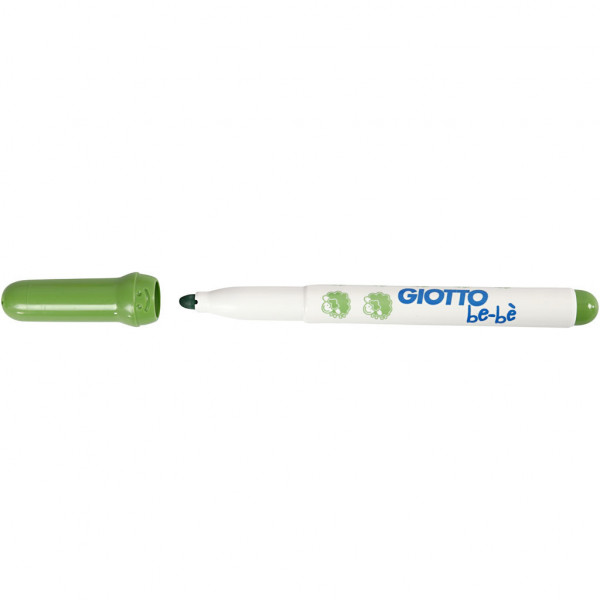 Child friendly, thick marker with a strong felt-tip from Giotto be-bè. To remove, wash with lukewarm water.