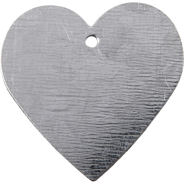 Flat, galvanized heart with a hole for hanging (dia. 2 mm).