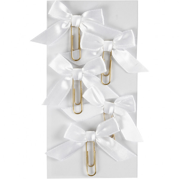Gold plated metal clip with on-band bow of satin ribbon. Used as decoration and effect on cards, invitations, gifts, scrapbooking, planner and much more.