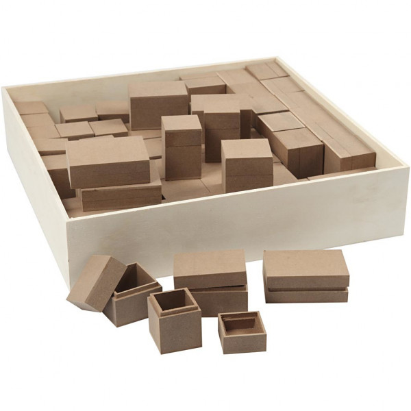 Mini Boxes, H: 2.5-5 cm, 60 pcs, MDF [HOB-56753]