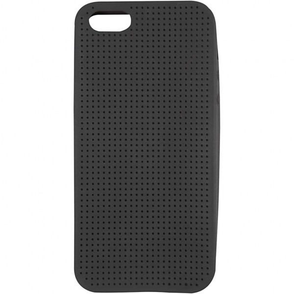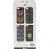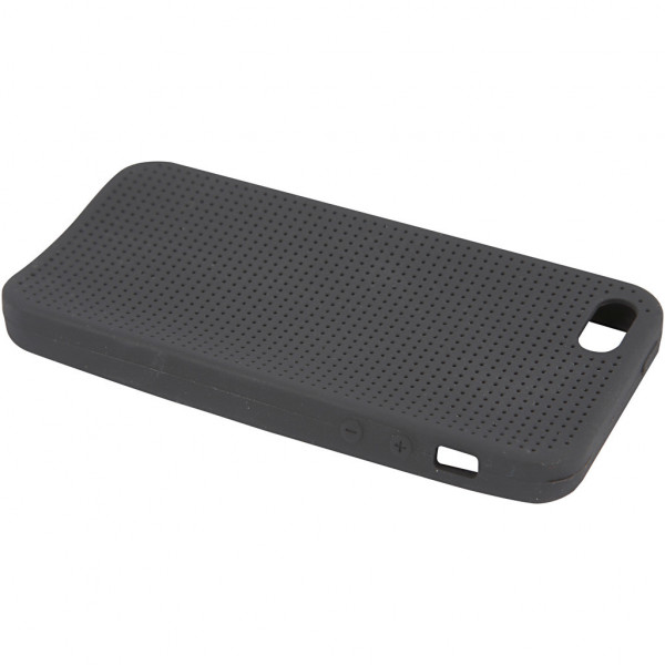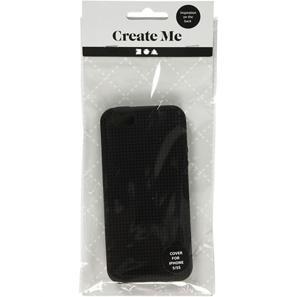 Silicone Cover that fits an iPhone. The cover is perforated with small holes so that it can be embroidered in one of four patterns shown on the packaging.