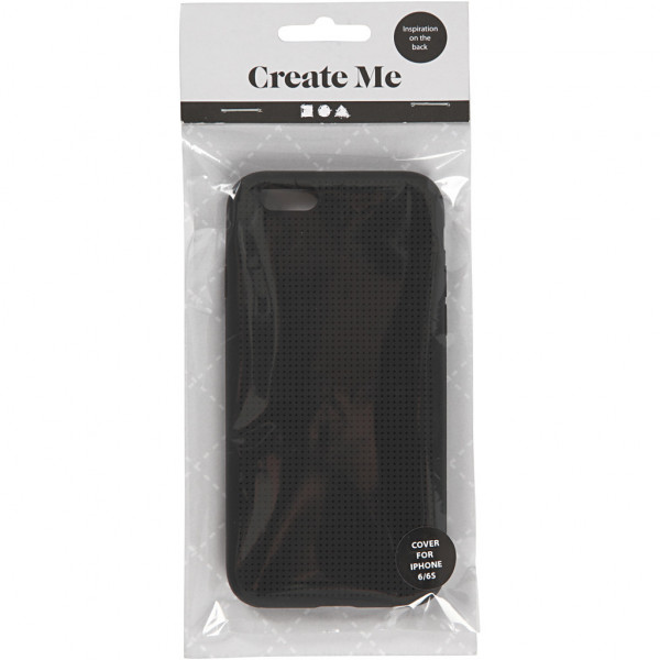 Silicone Cover that fits an iPhone. The cover is perforated with small holes that it can be embroidered in one of four patterns shown on the packaging.