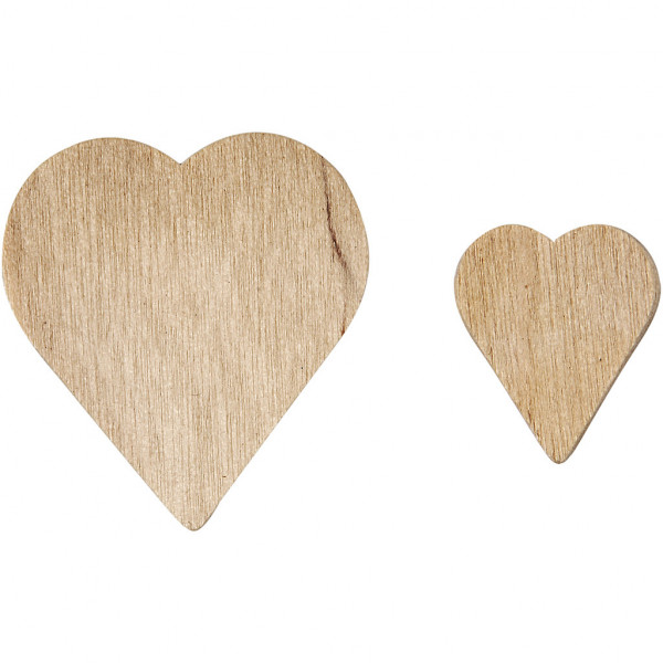 Pack of wood hearts in assorted sizes.