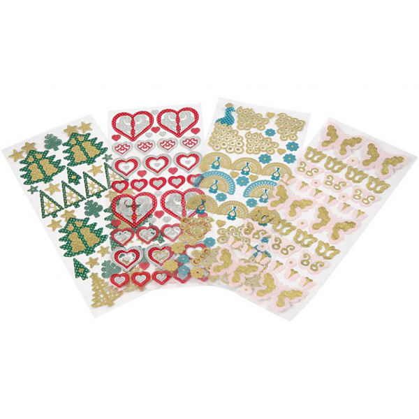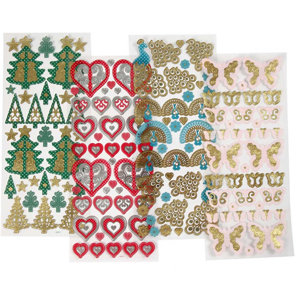 Assortment with self-adhesive foil stickers with 3D- and glitter effect.