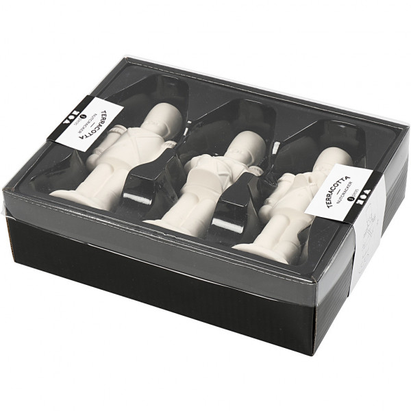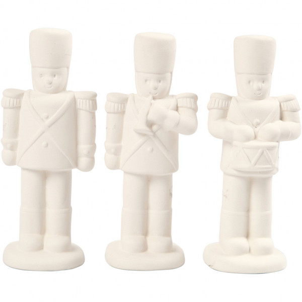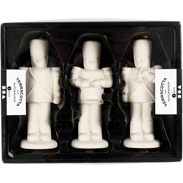 Set of 3 nutcrackers of untreated terracotta with different instruments.