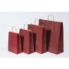 Give your customer a colored shopping bag, made of a strong 100 gram recyclable Kraft Paper. We offer these shopping bags in a big range of great colors and various sizes. They are very easy to use and easy to carry because of the twisted paper cord handles. These bags are supplied folded flat and are ideal for Magazines, clothing and other light weight products. Are you interested in your own logo or image on these bags? We customize them starting at 5,000 pcs. Ask our Customer Service for a keen quotation.