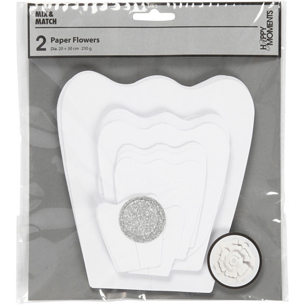 Paper Flowers, D: 15+25 cm, 230 g, 2 pcs, white [HOB-599901]