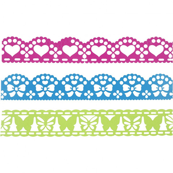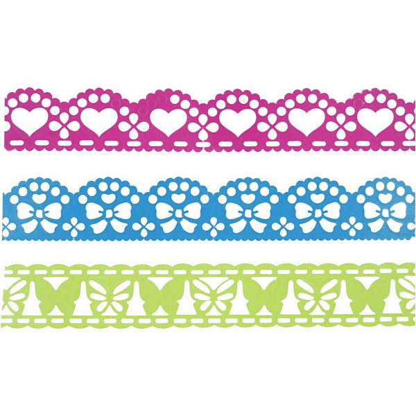 Paper Lace Borders, W: 15 mm, 3x2 m, blue, green, fuchsia [HOB-28443]