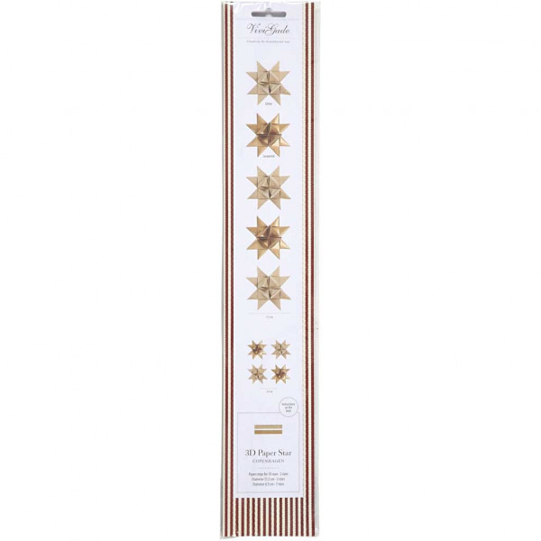 One-coloured paper star strips in two different sizes from the Vivi Gade Design series. Diameter indicates the star's final size. Instructions included.