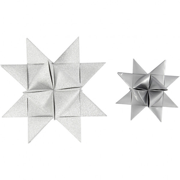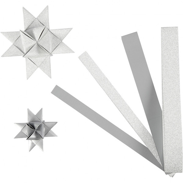 Paper Star Strips, W: 15+25 mm, D: 6.5+11.5 cm, 40 strips, silver [HOB-24372]
