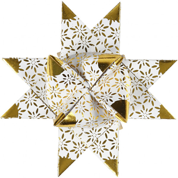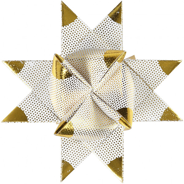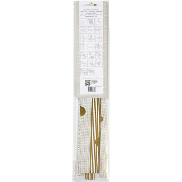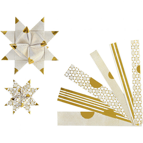 Paper Star Strips, W: 15+25 mm, D: 6.5+11.5 cm, 48 strips, white, gold [HOB-22562]