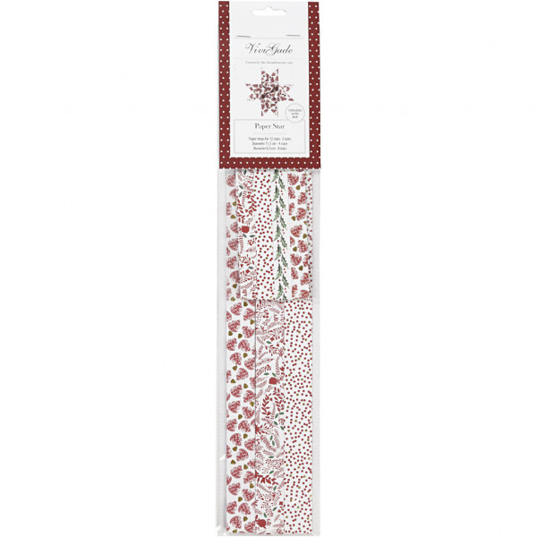 Paper Star Strips, W: 15+25 mm, D: 6.5+11.5 cm, 48 strips, white, red [HOB-24352]
