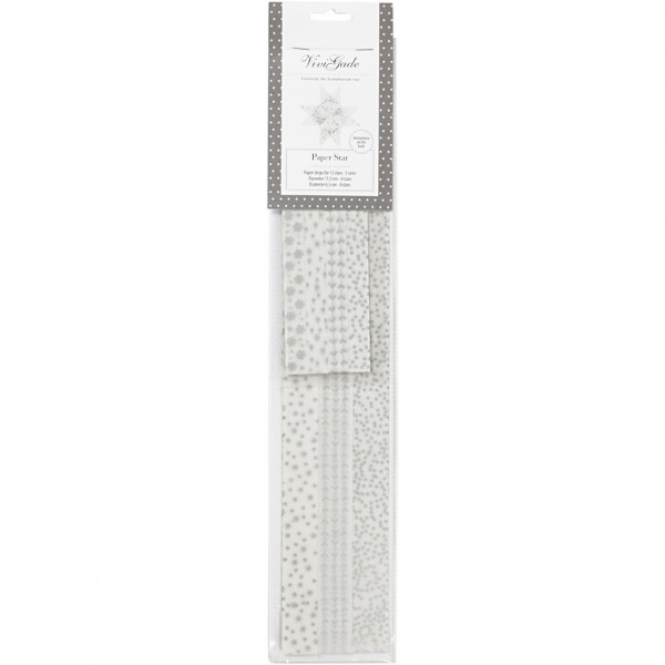 Paper Star Strips, W: 15+25 mm, D: 6.5+11.5 cm, 48 strips, white, silver [HOB-24363]