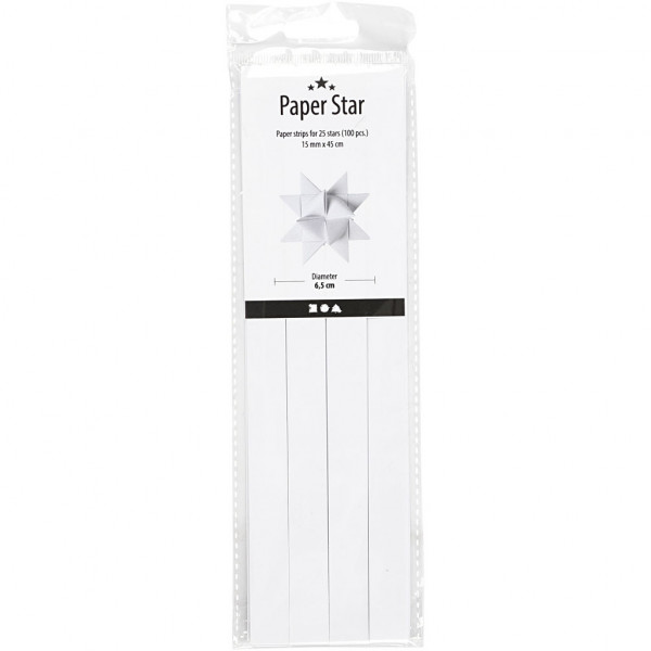 Paper Star Strips, W: 15 mm, D: 6.5 cm, 100 strips, white [HOB-209330]