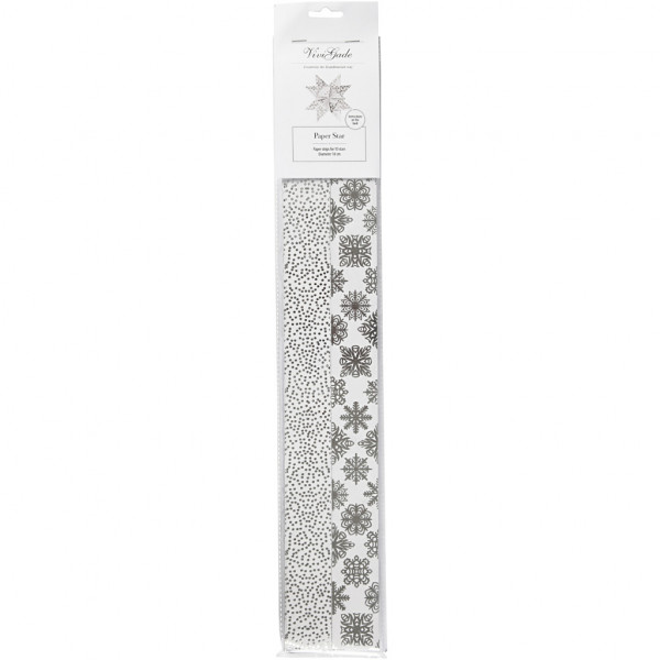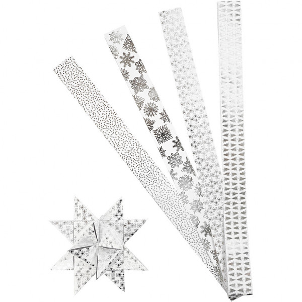 Paper star strips, W: 40 mm, D: 18 cm, 40 strips, white, silver [HOB-24370]
