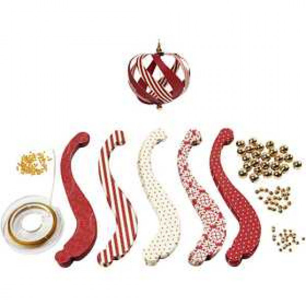 Die-cut paper strips from the Vivi Gade Design Series to make 12 Christmas ornaments - including gold Fitting Kit to gather them.