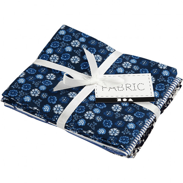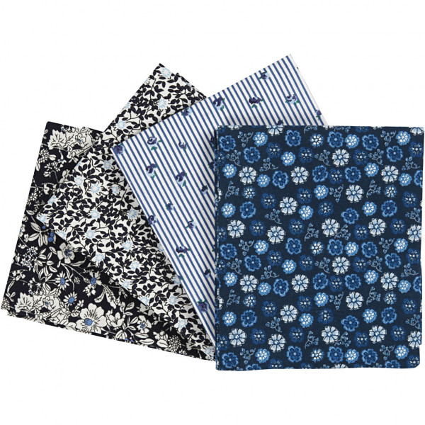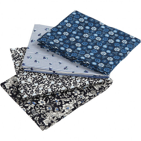 Patchwork Fabric, size 45x55 cm, 100 g/m2, 4 pcs, blue [HOB-44176]