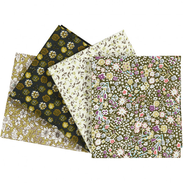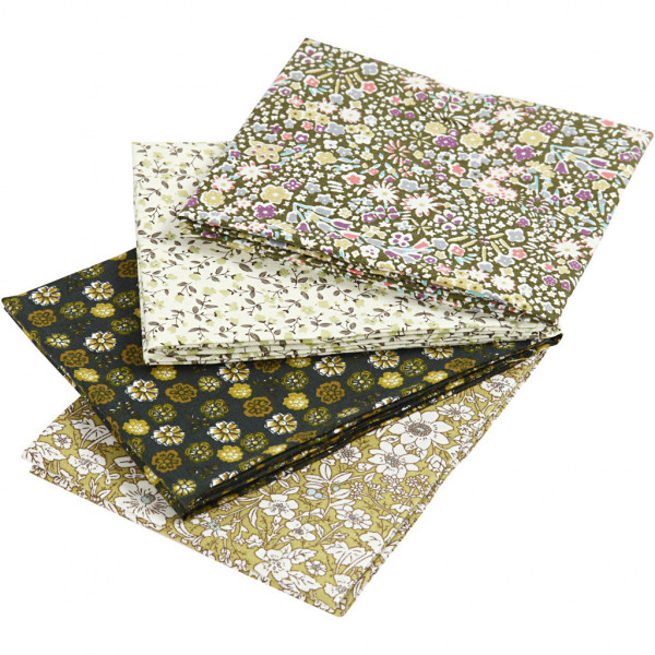 Patchwork Fabric, size 45x55 cm, 100 g/m2, 4 pcs, green [HOB-44179]