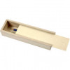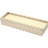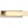 Pencil case of light wood with sliding lid.