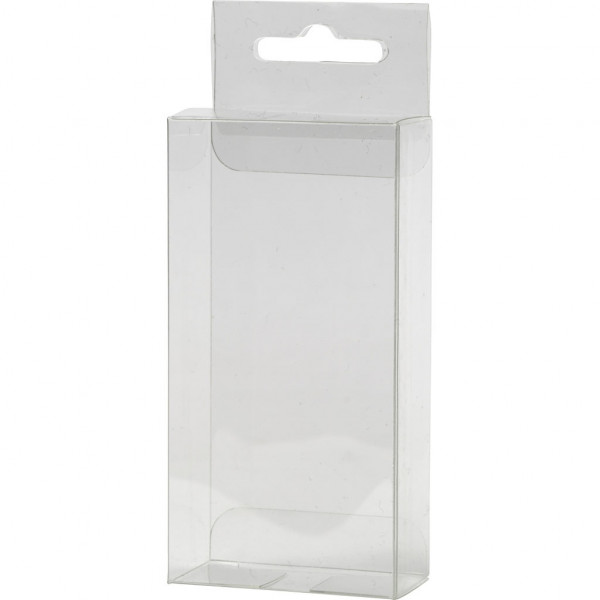 Transparent plastic folding packaging boxes with euro slot to hang.