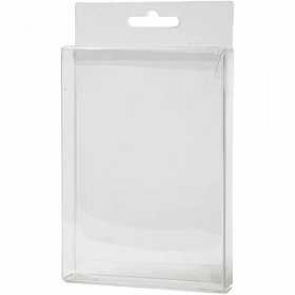 Transparent plastic folding packaging boxes with euro slot to hang.