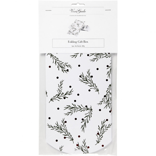 Pillow box, size 23.9x15x6 cm, 300 g, 3 pcs, green, white, metallic red [HOB-25357]