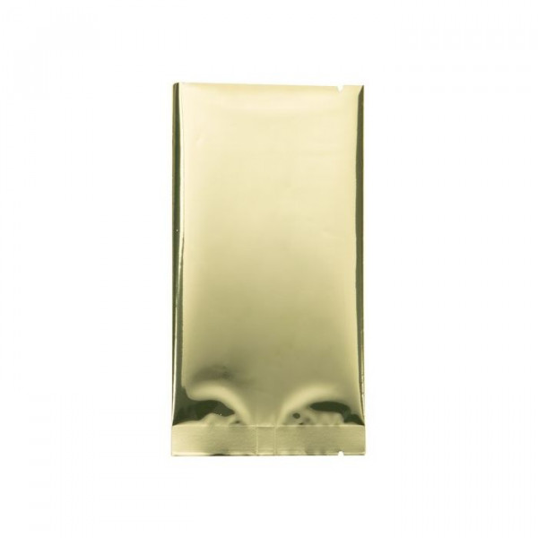 Our SVP35HG is our metallized heat seal bag in shimmer gold. This 65 micron bag that measures 75 x 140mm is perfect for powdered mixes, supplements and edibles. As part of our line of metallized heat seal bags designed with our highest moisture barrier, this bag keeps granola, dried fruit and nuts fresh while protecting against UV light, moisture, and oxygen. Tear notches are featured at both ends of the bag for easy opening. The bag is open at the top (width side) for easy filling. It has a 13mm bottom and a 8mm back-center seal. Food safe.