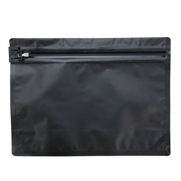 The CRZ912B is part of our child resistant bag line. This child resistant locking pouch is intended to hold vitamins, pharmaceuticals, cannabis or marijuana infused products, and anything that you want to keep away from small children. A unique push release locking mechanism adds security to the bag and complies with ASTM D3475 child-resistant standards. A matte black finish gives the bag a sleek, professional look and can be printed on for enhanced branding and is opaque to maintain privacy. The 150 micron, quad blend barrier provides the top level of protection. The 305 x 102 x 230 mm size has a 102mm gusset, making it ideal for use as an exit container to hold large edibles and medicated drinks in the cannabis industry. It ships and stores flat to save money and warehouse space. FDA approved.