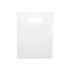 This 381x457mm white reusable shopping bag is a great option for retail stores or promotional booths. These bags are considered reusable and will meet single-use bag ban laws. The white material helps your brand stand out when printed on and provides a clean look when used standard. They feature die cut handles for easy carrying. The 381x457mm size will hold standard shoe boxes and other large items. Made of recycled material. Custom sizing and printing is available.