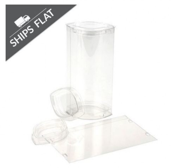 Crystal Clear Flat Tubes ship flat and easily pop up. These high clarity tubes are great for retail and gifts, and come with 2 thermoformed lids for a secure closure. Easy to assemble. Price is per bundle of 25 pieces. Size 11.7x15.7 cm.