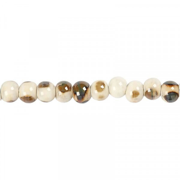 Pottery Beads, D: 10 mm, hole size 2 mm, 24 pcs, off-white [HOB-69957]
