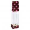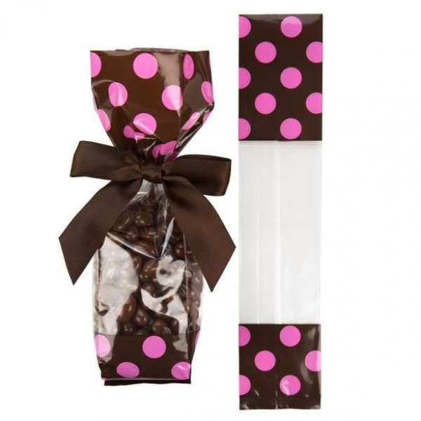 Pink polka dots offer a bit of whimsy for packaging gifts and treats. Our G1BP side gusseted bag has a brown with pink polka dots print on the top and bottom, while the center is clear for a full view of your product. This 40 micron bag measures 51 x 48 x 241 mm and is perfect for packaging candy, cake pops, cosmetics, and gifts. The material is made from a blend of laminated material for extra durability and offers a high clarity finish. Printed gussets are heat sealable and food safe. Expandable side gussets offer extra room for bulky products. This bag is bottom-sealed and stands upright when filled. Heat seal or close with ribbons, bows, or twist ties. Food safe.