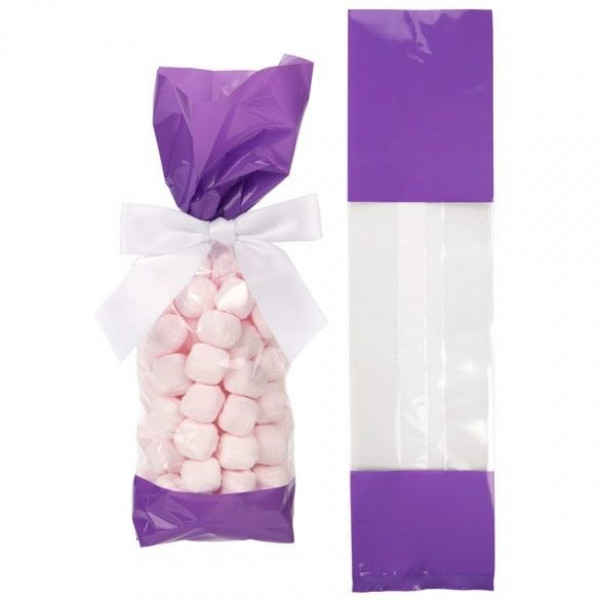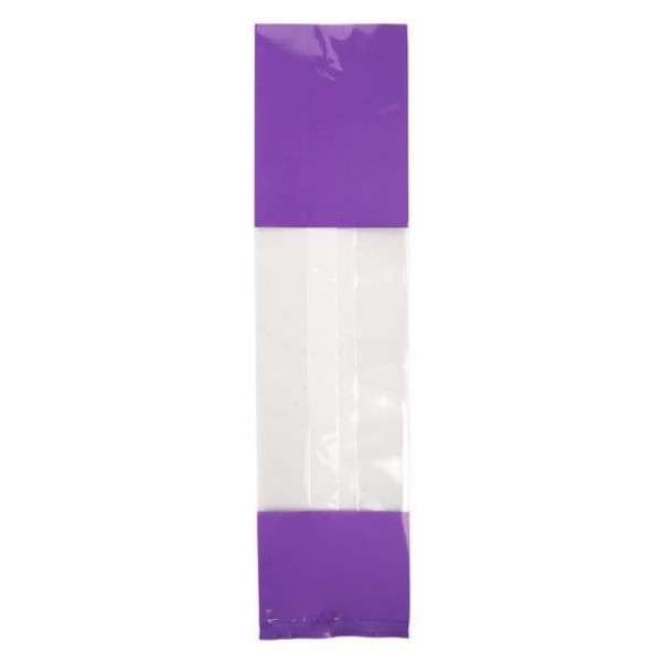 Create a festive mood with this clear side gusseted bag with purple highlights. The G2PL measures 67 x 48 x 273 mm and is designed with a purple top and bottom. This bag works well for favors and gifts. Fill this bag with candy, chocolates, confections, beauty products, and more. Side gussets expand for bulky products that require extra space. The center of the bag is transparent for a clear display of your product. The material is made of laminated material for exceptional clarity and bottom-sealed for added strength. Easily jazz up this bag even more with accessories like ribbon, bows, and twist ties. This bag is heat sealable for a tamper-proof closure.