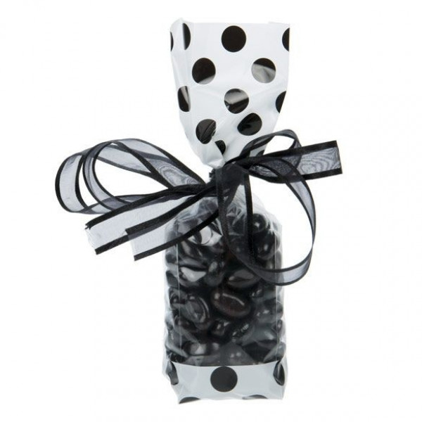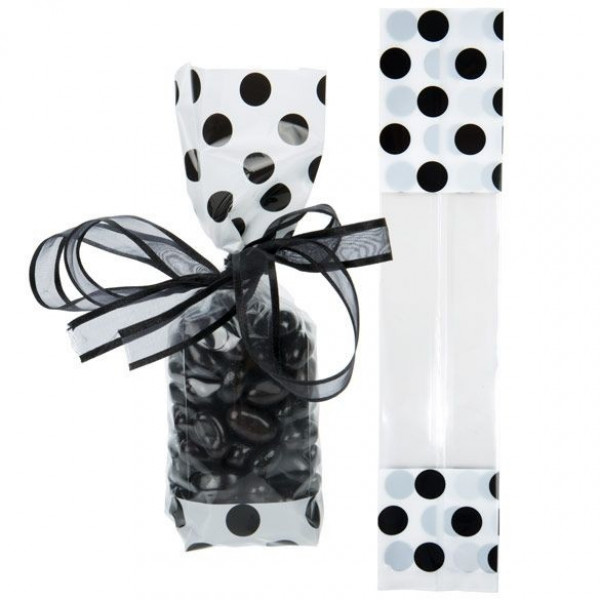 A playful polka dot design is a great match for gifts and favors. The G1WB is designed with a white with black polka dots print on the top and bottom of the bag. The center of the bag is crystal clear to show off your product. Fill this 4 micron bag with candy, treats, and gifts. The material is made from laminated material and is bottom-sealed for extra strength. Not only is this 1.6 mil bag durable, but it also has expandable side gussets to accommodate your product. Dress up this festive bag with ribbons or twist ties. Heat seal with a standard hand sealer for a more secure closure.