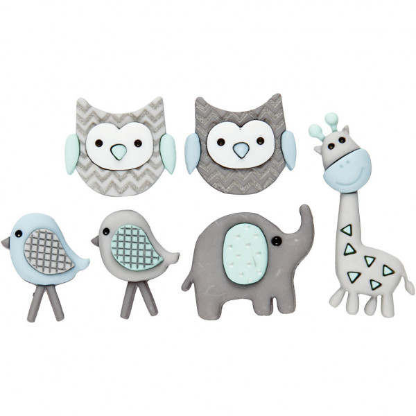 Novelty Buttons, W: 15-20 mm, L: 17-35 mm, 6 pcs [HOB-40319]