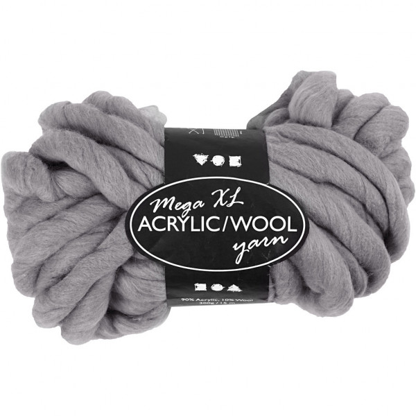 Chunky yarn of acrylic/wool, L: 15 m, mega, 300 g, grey [HOB-42168]