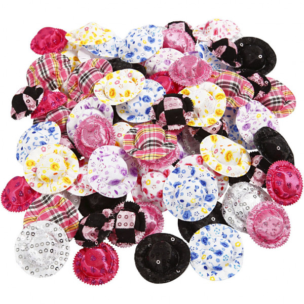 Mini Hats, D: 4 cm, 100 pcs, asstd colours [HOB-51257]