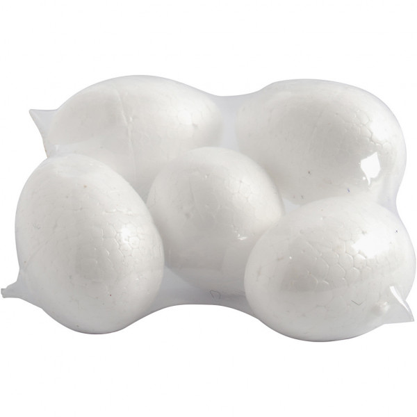 Polystyrene Eggs, H: 6 cm, 5 pcs, white [HOB-543200]