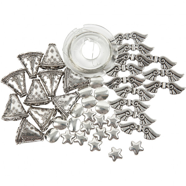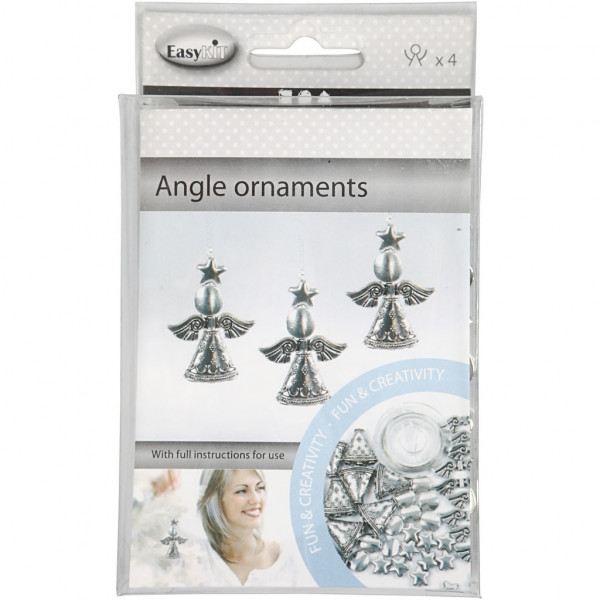 Angel Ornament, H: 5.5 cm, 4 pcs, antique silver [HOB-632701]